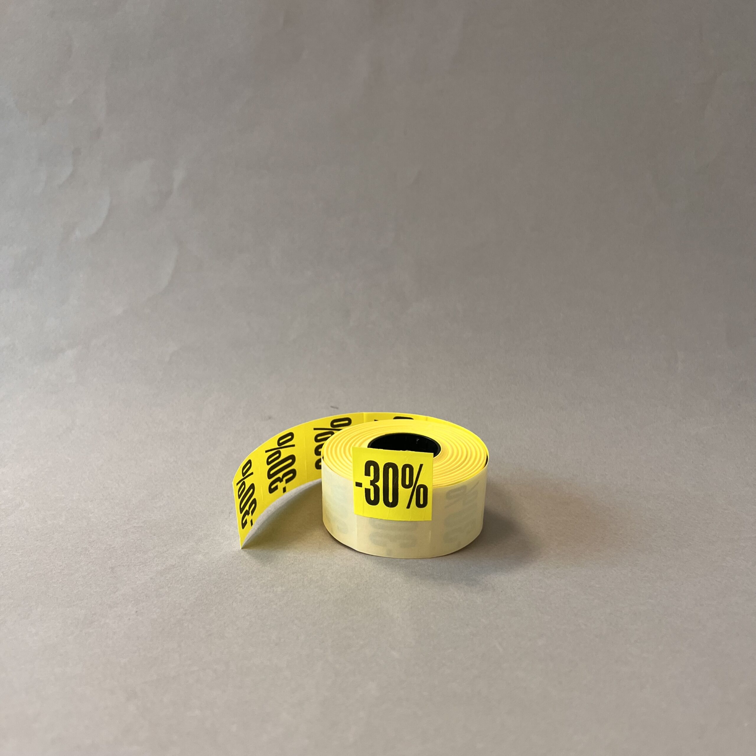 Hintalappu 29x28mm pitoliima esipainatuksella ”-30%” keltainen. Myyntierä alkaen 6 rullaa